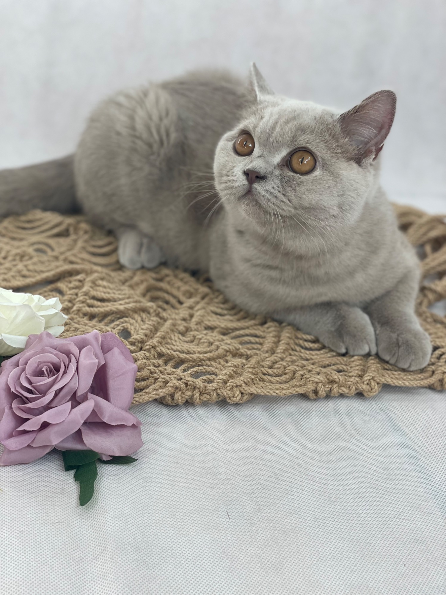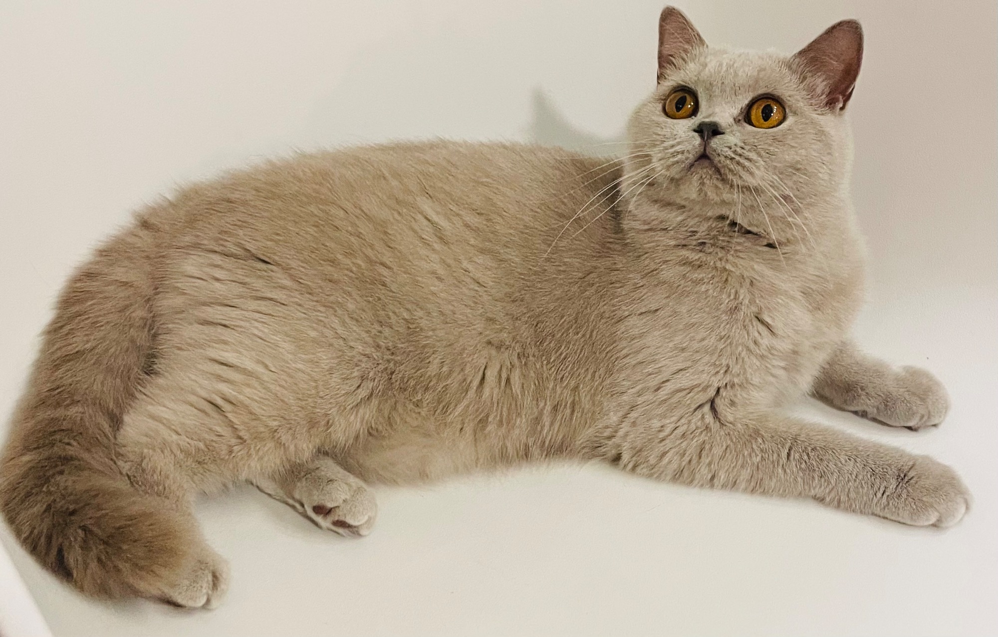 Unser lieber Hubertus trägt ein sehr dichtes und ideal gezeichnetes Fell der Farbe Lilac. Er trägt Blutgruppe B und ist reinerbig Kurzhaar.